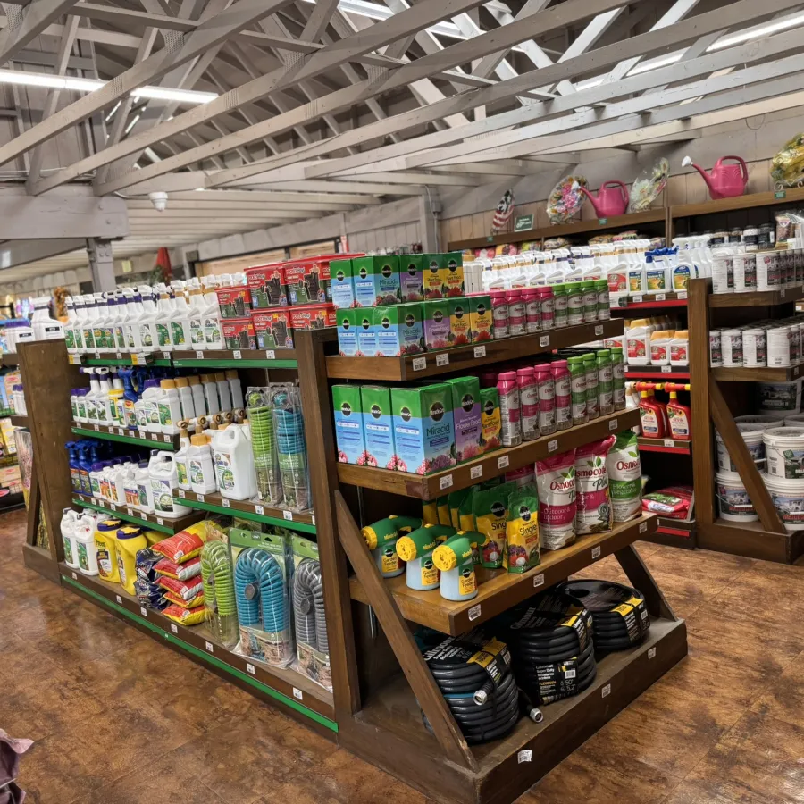 We carry everything you need to create and care for your garden, including soils, fertilizers, pottery, tools, and trusted solutions for pests and plant health. With both indoor and outdoor shopping areas, the store offers ideas and essentials for every garden style.